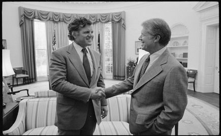 Growing up in an Irish-American family, Kennedy saw the conflict in Northern Ireland as a deeply personal issue. When Jimmy Carter entered the White House in 1977, it created an opportunity for Kennedy to work with the incoming Democratic administration to change America’s policy towards Northern Ireland. Officially the United States had no position on the conflict. It was strictly considered to be an internal British matter. Kennedy adopted a two-pronged strategy aimed at moderating incendiary behavior on both sides of the conflict. He formed the Four Horseman with Tip O’Neill, Daniel Patrick Moynihan, and Hugh Carey to issue a St. Patrick’s Day statement condemning violence and calling on Americans to stop funding the Irish Republican Army (IRA). The Four Horsemen also began to pressure Carter to launch an unprecedented presidential initiative encouraging England to moderate its support of the Protestant government in Belfast at the expense of the Irish Catholics. In August 1977, over the intense objections of the U.S. State Department and the British government, President Carter issued a historic statement promising aid to all parties in Northern Ireland to support a peacefully negotiated democratic settlement.